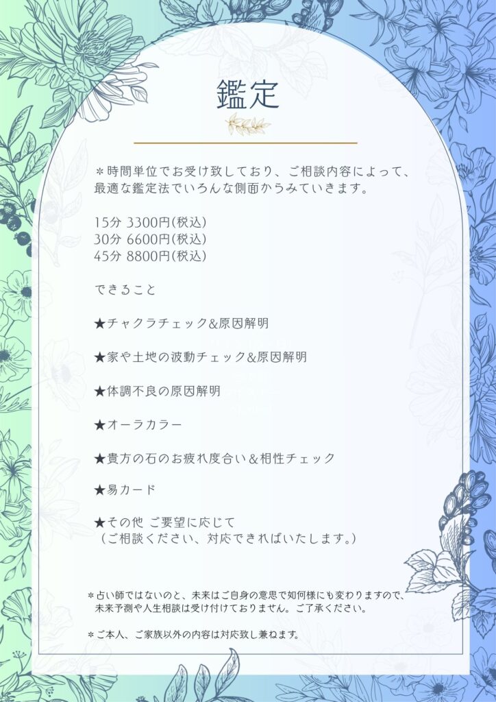 *占いではないのと、未来はご自身の意思で如何様にも変わりますので、 未来予測は受け付けておりません。
